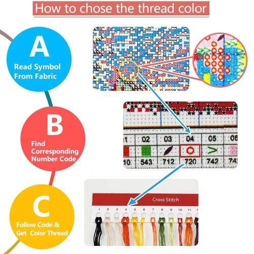 stitch. The symbols on the fabric have a corresponding number code. Just read the symbol, such as, "x" "",and pick