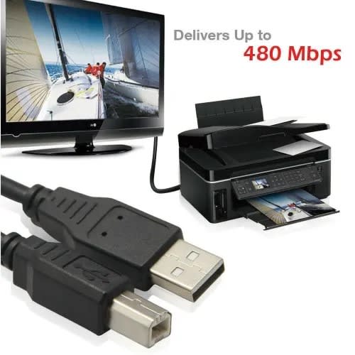 High quality USB 2.0 High Speed cableSupports data transfer rate at up to 480MbpsUsed to connect computer to peripheral devices such as printers, scanners, external hard drives and moreSupports Plug & PlayFully Compatible with USB 1.0 & 1.1PC and Mac compatibleRoHS compliantFully shieldedConnectors: USB Type A Male to Type B MaleCable color: Black