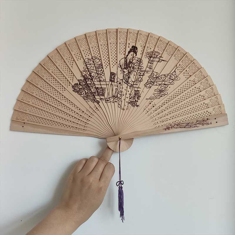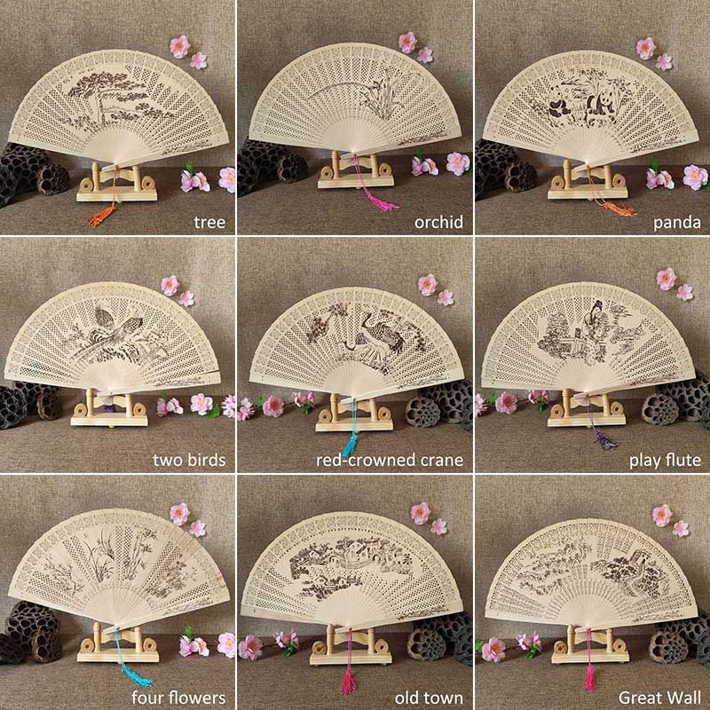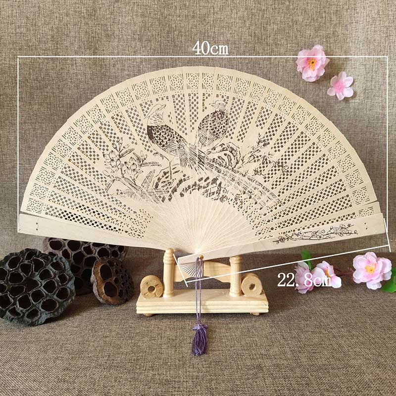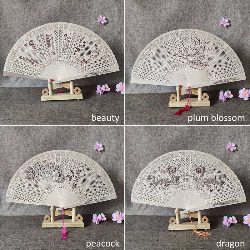 Buy Printing Decoration Style Lady Chinese Carving Hand-made Wood Wood Fan Incense Craft Hollow 1Pcs Antique Vintage Folding Fans in Nigeria
