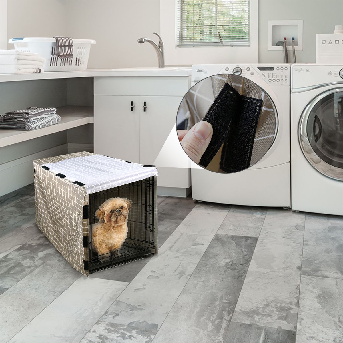 [Adjustable Four Door]Dog cage cover allows easy access to front, rear amp; 2 side doors by adjusting the hook amp; loop fasteners.
