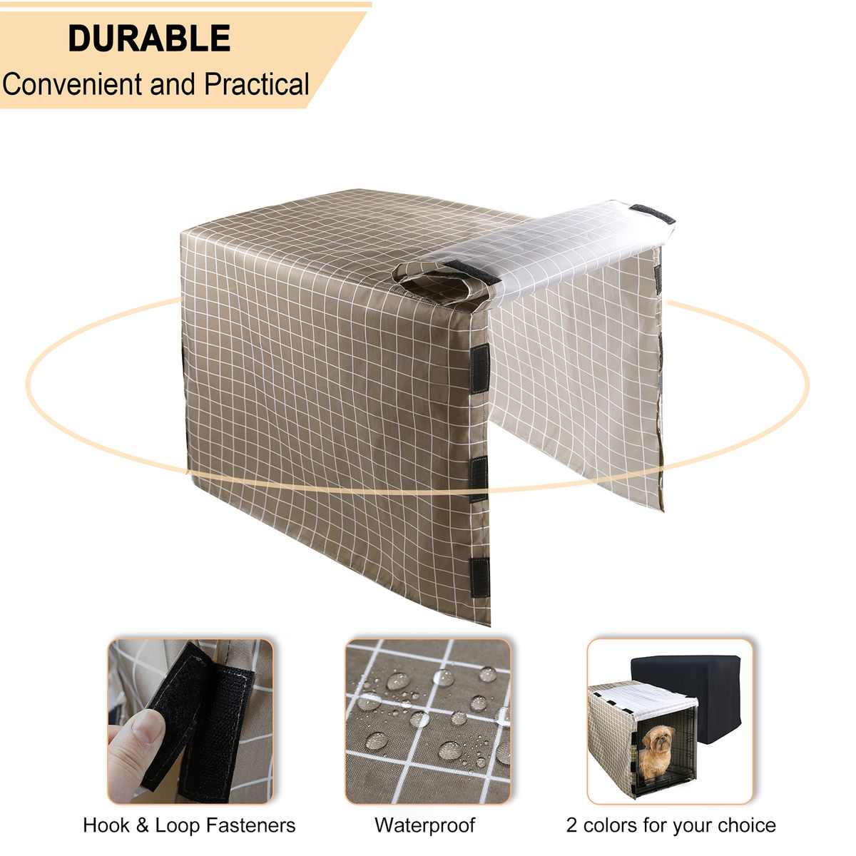 Durable dog crate cover made of tear-resistant and water-resistant 210D Oxford Cloth with PVC coating can effectively protect from wind, dust, and water.