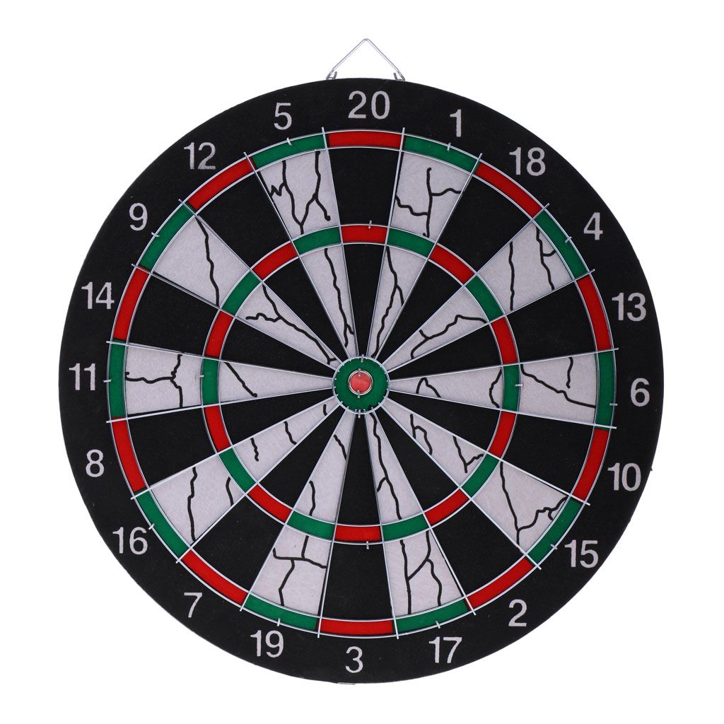 Professional safety magnetic dart boardTraditional dart board on 1 side and a target bulls-eye game on the otherDart set comes with 6 magnetic darts, Board constructed of plastic, magnet and flockingLightweight and portable, hanging quickly anywhereA wide variety of fun games of skill can be played using this safe, magnetic dart board set2-SIDED- Regulation Size Classic 20 Point & Circular Bulls-EyeComes complete with set of six steel tip brass dartsClassic 20 Point & Circular Bulls-EyeWire fasteners and wire number ring for maximum playing areaLong lasting to help improve your game DOUBLE SIDED:The obverse is regulation-size bristle dart board, ideal for tournament, tavern, or home use.The is black alternating with white board easy for beginnersHIGH DENSITY FLOCKING:The board is made of super-dense, high-visibility flocking that offers more vivid colors and superior durabilityThe high-quality flocking with no component is safer for usingGALVANIZED WIRING:The board's spider wiring is made of a high-tensile, galvanized steel that is ultra-durableThe strength of the wiring deflects darts into the bed and increases the longevity of the boardGood entertainment tool:Good value item for indoor game, convenient to carry and easy-fixing at home, office, or clubs