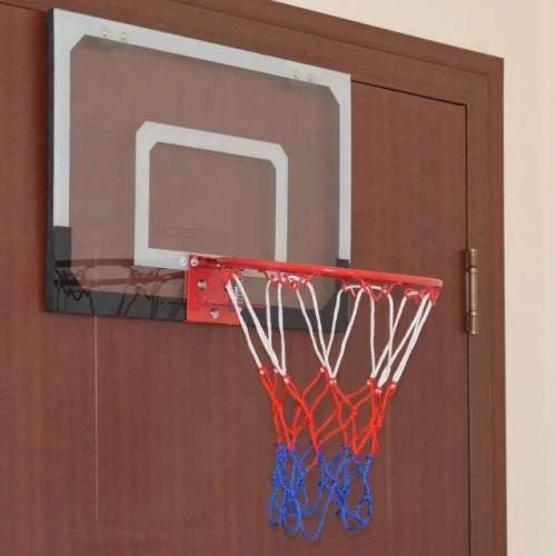 Includes pro-grade, spring-action break-away rim for slammin'Foam padded slide-on door mountsIncludes 5" diameter Pro Mini Hoop Basketball9" diameter spring- action "break-away" steel rim18" x 12" clear polycarbonate shatter-proof backboard