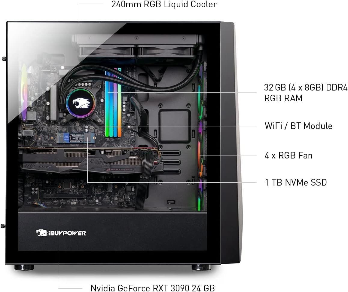 IBUYPOWER PRO TRACEMR 252I GAMING PC - Intel Core i9-12900KF, 12th Generation, 1TB SSD+ 2TB HDD, 32GB RAM, 24GB NVIDIA RTX 3090, Windows 11 Home, Keyboard & Mouse