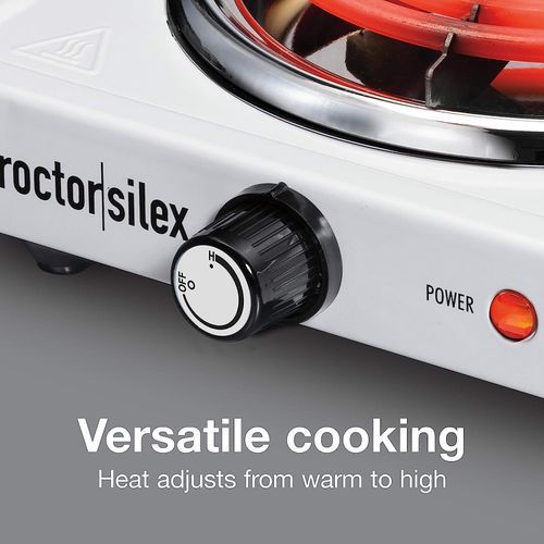 - VERSATILE COOKING — HEAT ADJUSTS FROM WARM TO HIGH The heat dial on this adjustable temperature portable electric stove lets you select the right temperature for every task from keeping food warm to boiling water for coffee or tea