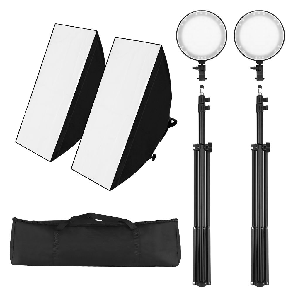 Professional Photography Light amp; Softbox Kit: Includes 2 * LED lights, 2 * softboxes, 2 * light stands, and a large carry bag.