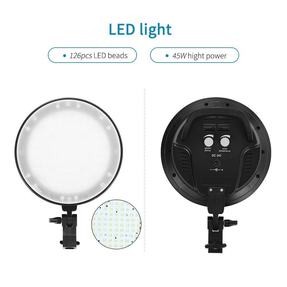 High-quality LED Lights: 45W high power LED light head with 126pcs LED beads, bi-color temperature(3200K-6400K) and adjustable brightness can meet all your needs of lights in different photography environment.