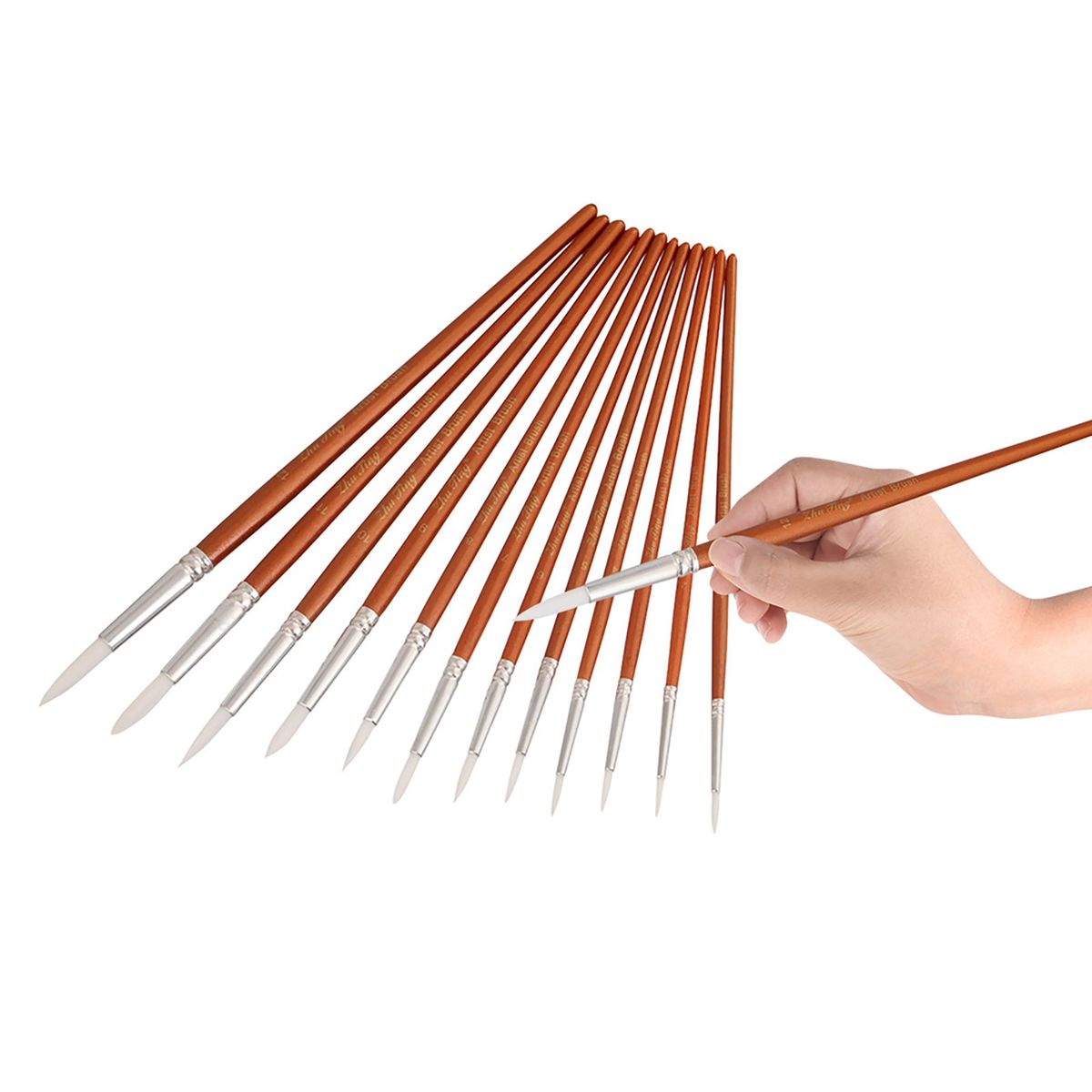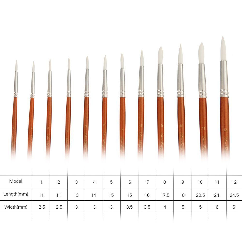 12pcs paint brushes in various size to meet your different painting needs, including 1#,2#,3#,4#,5#,6#,7#,8#,9#,10#,11#,12#.