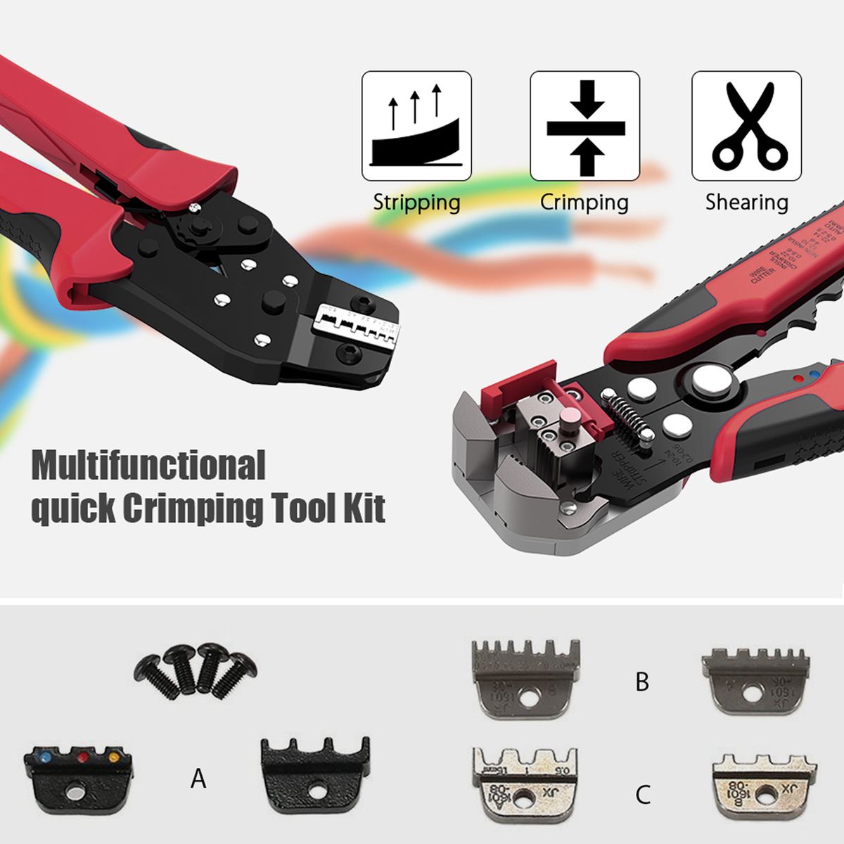 This professional and practical wire crimper tools with self-adjustable crimping pliers feature convenience, efficiency and harmlessness to the cable cores. It is easy to use, just hold the handle and manipulate it once to successfully press tight the wire and terminal blocks.