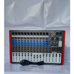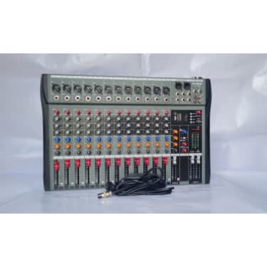 - Each channel has GAIN, 3-band EQ, AUX, EFFECT, PAN control knobs and - 12 channels mixing console with XLR, LINE inputs and 48V phantom power. volume control faders.