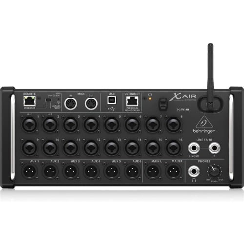 Product FeaturesiPad */Android * tablet controlled 18-input digital mixer for studio and live application16 award-winning Midas-designed, fully programmable mic preamps for audiophile sound qualityBuilt-In Tri-Mode WiFi router for direct operation?no need for external routers18 x 18 channel, bidirectional USB interface for direct recording on iPad etc.Revolutionary Dugan *-style Auto-Mixing automatically manages microphone gain sharingAward-winning X32 effects rack featuring 4 stereo FX slots including high-end simulations such as Lexicon 480L * and PCM70 *, EMT250 * and Quantec QRS * etc.100-band Real Time Analyzer (RTA) for all channel and bus EQ'sULTRANET connectivity for Behringer's P-16 Personal Monitoring System *Rack ears and protection bumpers included for flexible rack and onstage applications6 aux and main LR buses with inserts, full dynamics processing and 6-band parametric or 31-band graphic EQ6 XLR aux outputs and 2 XLR main outputs plus phones connector40-Bit floating-point DSP features "unlimited" dynamic range with no internal overload and near-zero overall latencyFree iOS, Android and PC/Mac */Linux * apps available for remote operation via Ethernet, LAN or WiFiMIDI In/Out allows controlling the mixer via MIDI equipment (incl. Mackie Control * protocol) or for use as a USB MIDI interface (future firmware)Future firmware updates, incl. new FX "Plug Ins", downloadable from behringer.com free of chargeInternal switch-mode power supply for noise-free audio and low power consumption