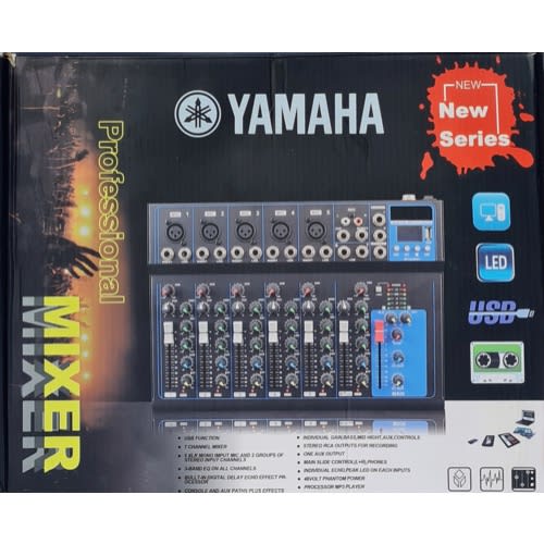 This is a high quality Yamaha product, Portable 7 Channels Mixer with USB slot port. It comes with the power Cable and owners manual paper. It is all you need to set ur sound in order. It can be used in Church, Mosque, Studio, Events Centre, and so on.