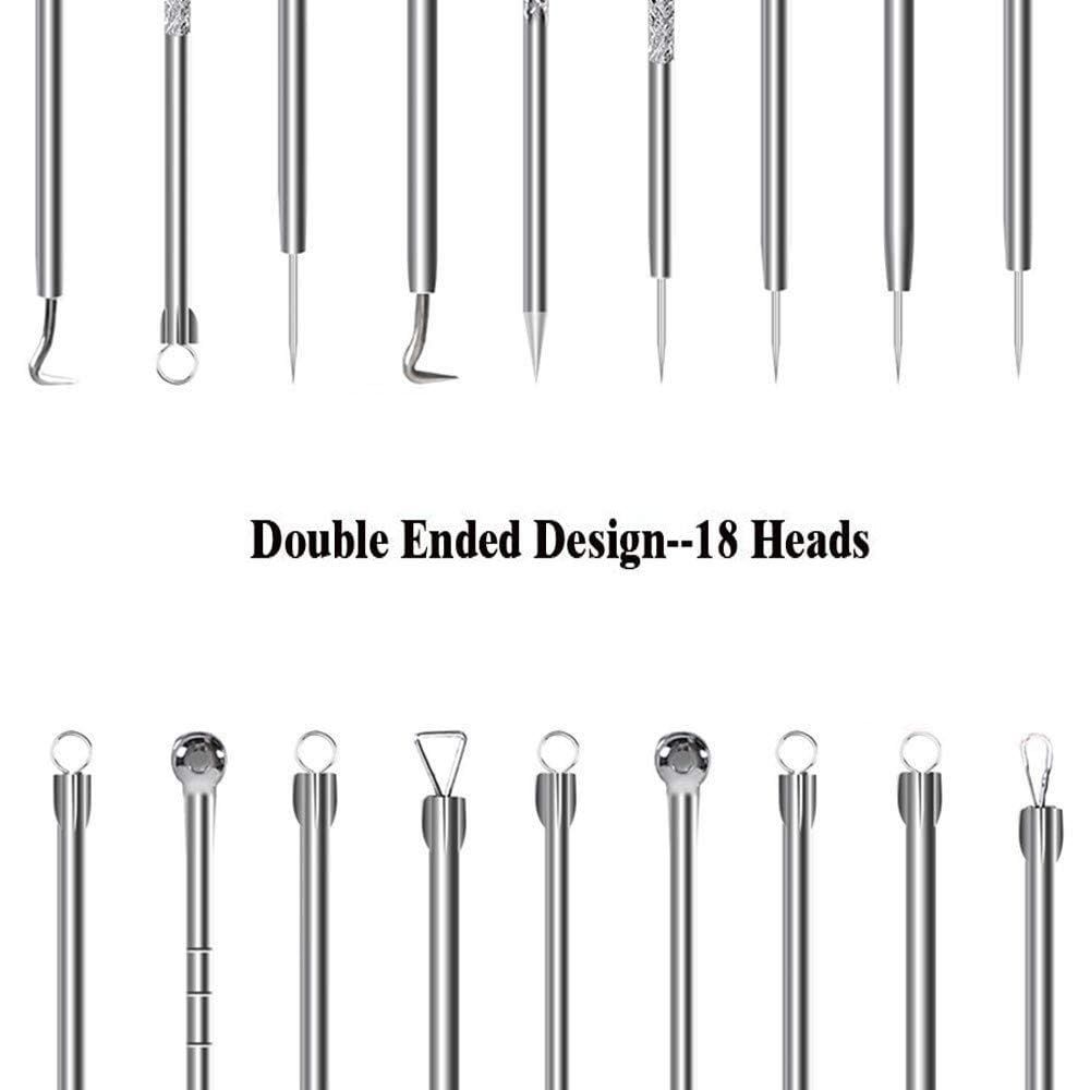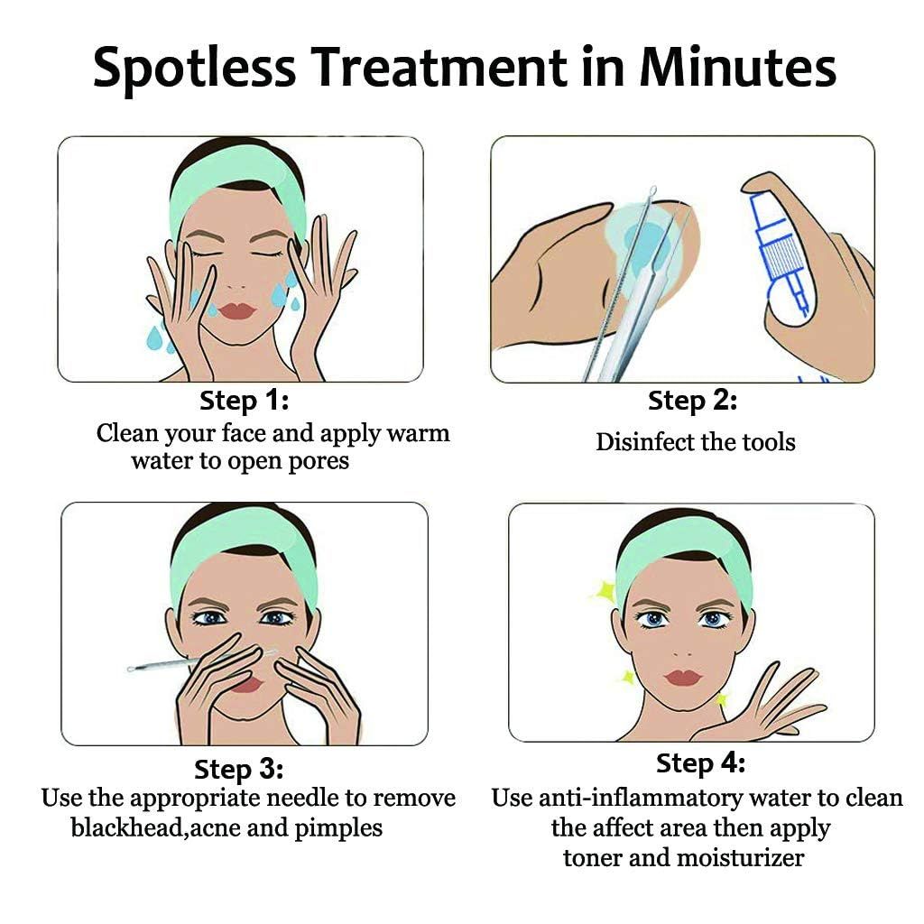 - Tips: Our blackhead remover kit with double needle types design, they are perfect to remove acne, blemish, blackhead, whitehead on forehead, face, sides of nose and other skin area. Please wipe all tools with rubbing alcohol before and after each use. Be gently during use and don't use any black head remover tool before the acne matured.