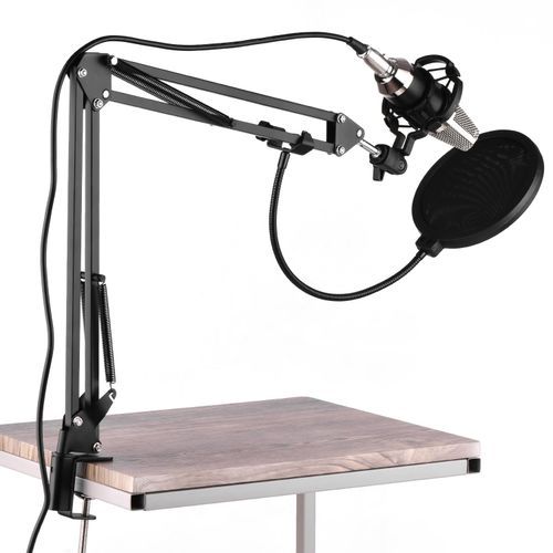 1 x Microphone,1 x Shock Mount,1 x Windscreen,1 x p op Filter,1 x Audio Cable,1 x Scissor Arm Stand,1 x Table Mounting Clamp