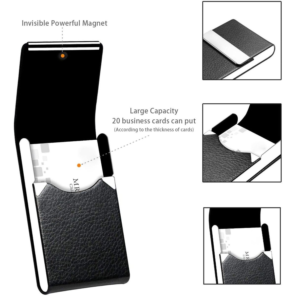 - 5,Easy to open: Our leather business card holder case use magnetic closure. It's easier to open than the buckle style. Use a built-in powerful magnet, keep it nice looking.