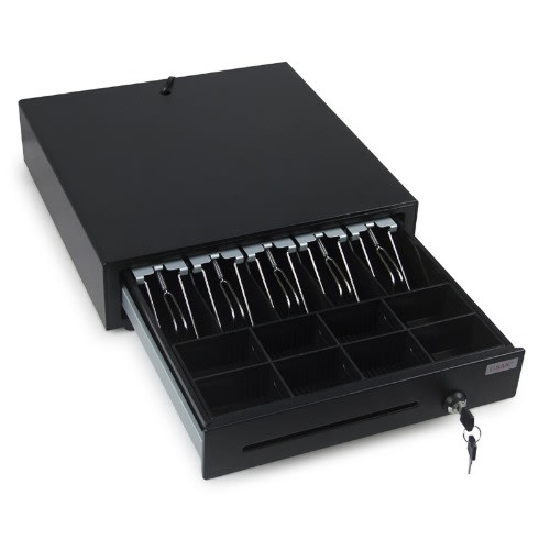 Looking for a Cash drawer for your POS system this register features heavy-duty metal construction and includes a key lock as well as an RJ12 connector. The drawer's front panel features a slip Deposit slot and you can open the drawer with a key or via a 24V signal through the 6-pin (RJ12) connector. It's also Compatible with Select Epson printers! This Cash drawer features removable bill and coin trays with adjustable dividers that let you customize it for the denominations you need most. The bill clips are spring-loaded to keep bills securely in place, but allow for easy removal as well. Keep your money locked up securely, get yours today! Order now.