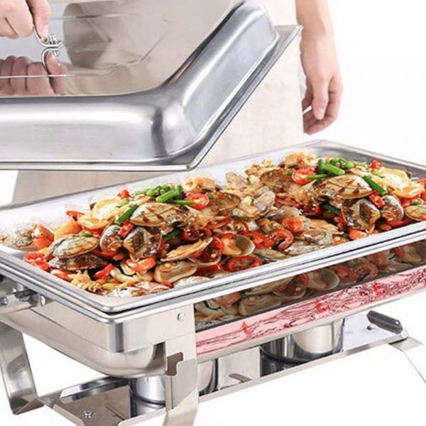 KEEP YOUR FOOD WARM AND READY -PE chafing dish allows for users to maintain their foods heat, with top-quality stainless-steel frame and body.COVENIENT STRUCTURE - Each chafing dish comes with 2 propellant holders, frame, A full-size pan tray, and lid. The chafing dish also has handles to ensure that the product can be moved with ease.chafing dish has a Stainless Steel, frame As well as a heavy duty handle that supports its 8 quart tray.EASY MAINTENANCE AND CLEANING - the chafing dish is easy to clean and maintain. Made with high quality materialFOLDABLE FRAME - comes with fold-able legs made with thicker Stainless Steel to ensure that its frame is effective and your food is well supported.