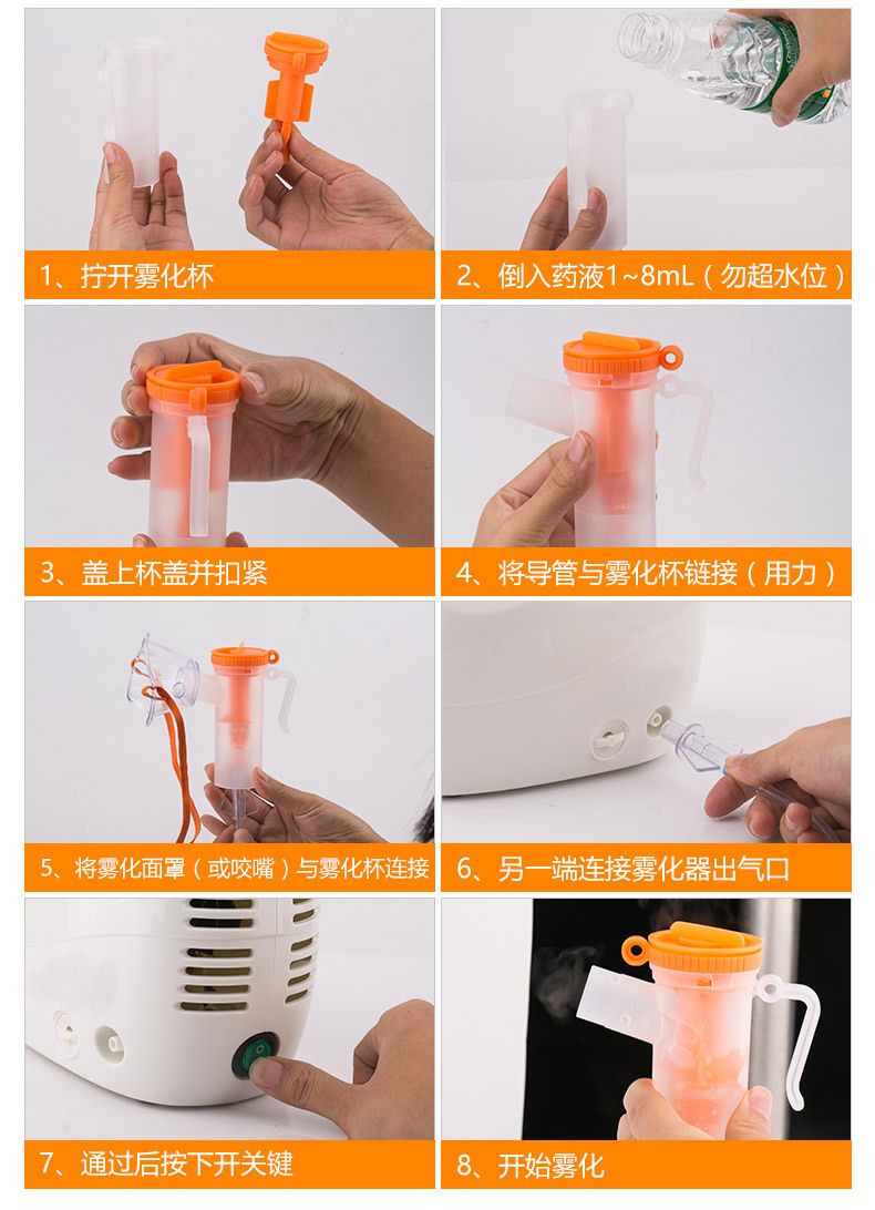 1 x Compressor Nebulizer 1 x Air supply pipe 1 x Suction mask1 x Suction nozzle1 x Filter cotton1 x English Manual