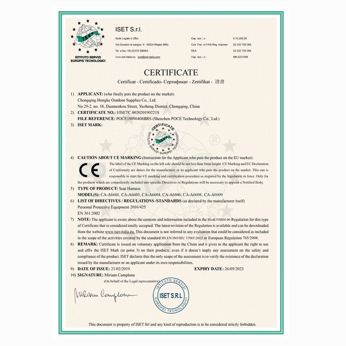 CE Certified, ergonomic designed safety harness makes it move with your body well and distributes pressure and keep you comfortable while climbing.
