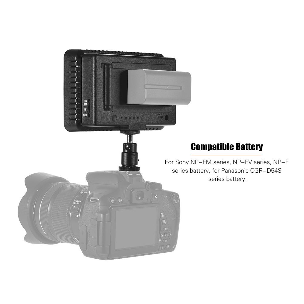 Compatible Battery: For Sony NP-FM series, NP-FV series, NP-F series battery, for Panasonic CGR-D54S series battery; For 6* alkaline/Ni-MH AA battery