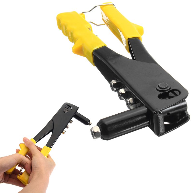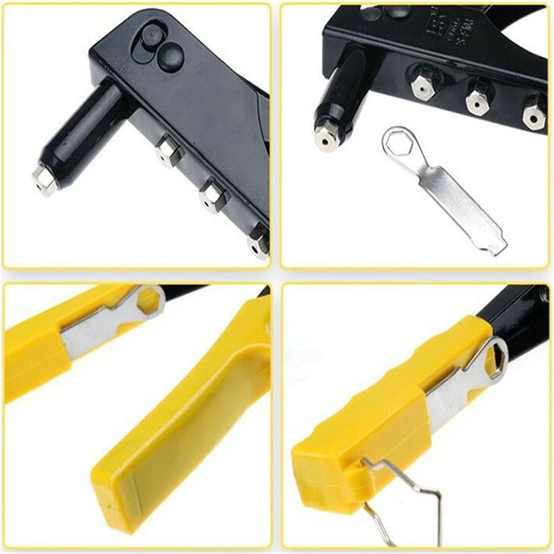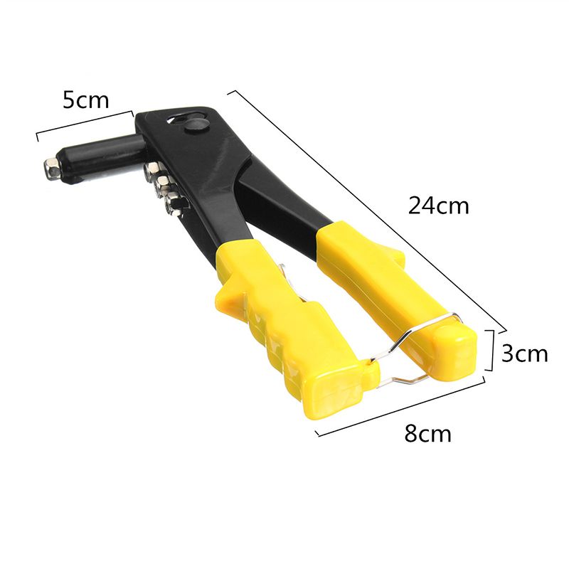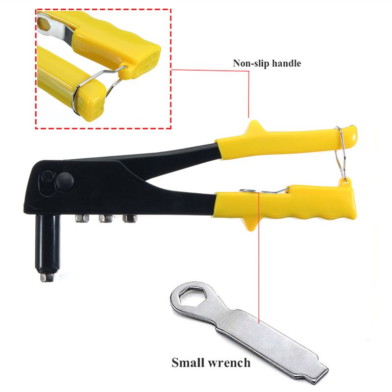 Profeional double-handle manual riveting machine single core pull 4.0 4.8 2.4 3.2mm with wrench set household hand tools Features: -PVC plastic handle, comfortable grip and good anti-slip effect. -The pull nozzle replacement wrench is fixed on the riveting gun, which is easy to use. -Equipped with a small disaembly wrench, the rivet head can be replaced according to different needs, which is convenient and quick. -Suitable for riveting of metal, fiber, leather and other materials, which is labor-saving and convenient. -Can be used vertically or horizontally. -Suitable for aembly, automotive work, sheet metal, etc. -Comfortable grip and easy operation. Specification : Color: black + yellow Material: carbon steel + alloy steel + PVC Size: about 24x13x3cm/9.45x5.12x1.18'' Applicable diameter: 2.4mm/ 3.2mm/ 4.0mm/ 4.8mm Notes: 1. Due to the difference in light and screen, the color of the product may be slightly different from the picture. 2. Due to manual measurement, please allow a difference of 1-2cm, please refer to the actual product, thank you.
