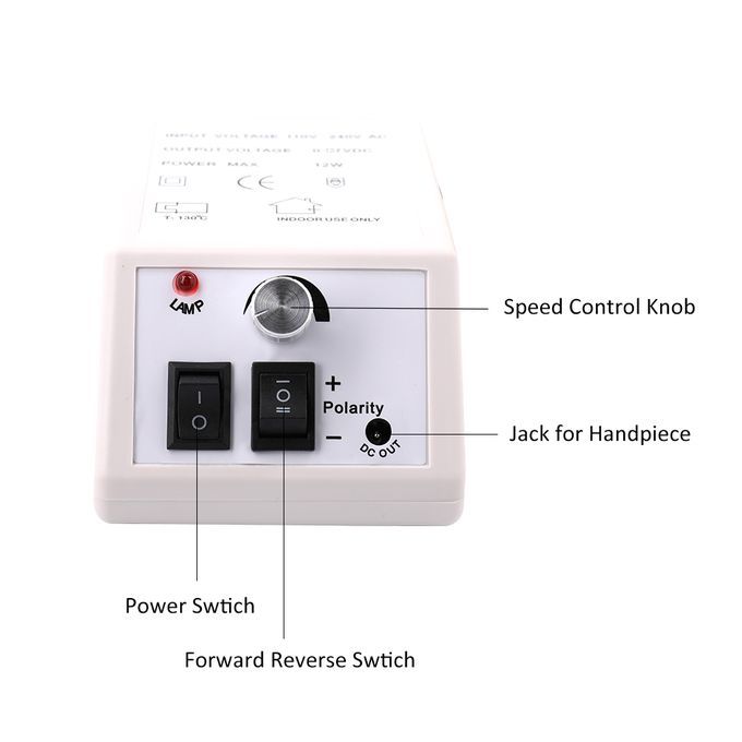 1 x Supply,1 x Handpiece,1 x Handpiece Support,1 x 6pcs Nail Drill Bits,1 x User Manual