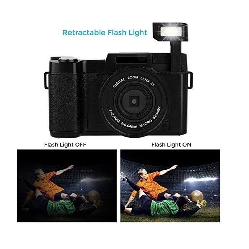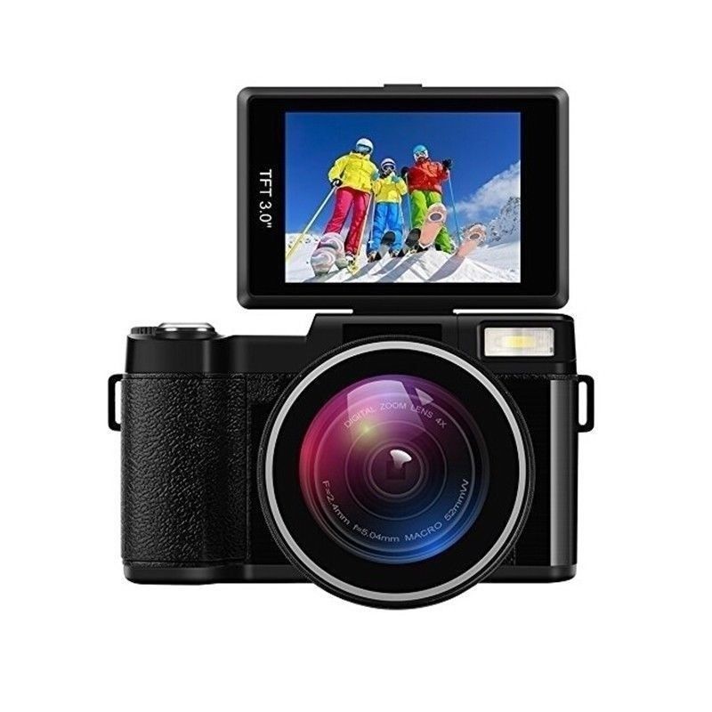 1.The vlogging camera has the 3 inches LCD view screen, you can rotate 180 degree for selfies and full frame.It can shoot both picture and video, provide a HD1080p @15fps video resolution and 24MP picture resolution, to bring you a new high-definition experience. The digital camera supports 4X digital zoom. You only need to press the W and T button to zoom in or out your picture.