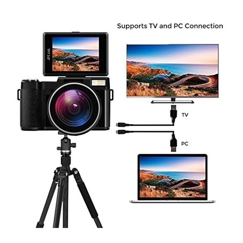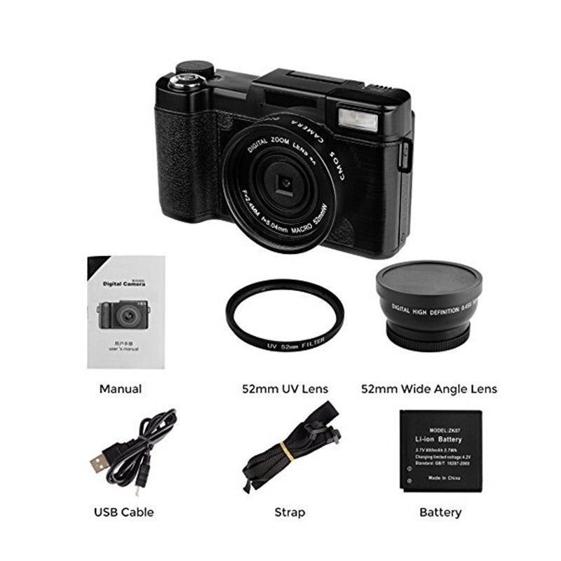 2.Digital camera camcorders are equipped with 52mm standard Wide Angel Lens and 52mm UV Lens, When you need to take wide picture the Wide Angel lens will help you greatly. You can also buy other 52MM lenses to meet diversified requirements of photography, such as Teleconverter Lens and Tisheye Lens and so on.You can mount this camcorder on a tripod so that you can do some vlogging. It supports standard SD/SDHC class 6 card (32GB max) (SD card and Tripod are excluded in the package).