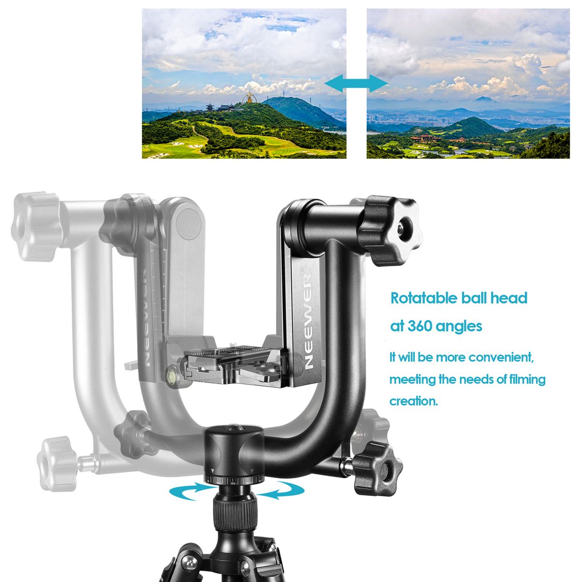 The neewer Gimbal Head can hold up cameras weighing over 30lbs/13.6 kg, making it perfect for any photography using large telephoto lenses. Separate locks control the 360 degree panning base and swinging arm, allowing a full range of motion ideal for covering sporting events, catching birds in flight, or any other fast moving subjects.
