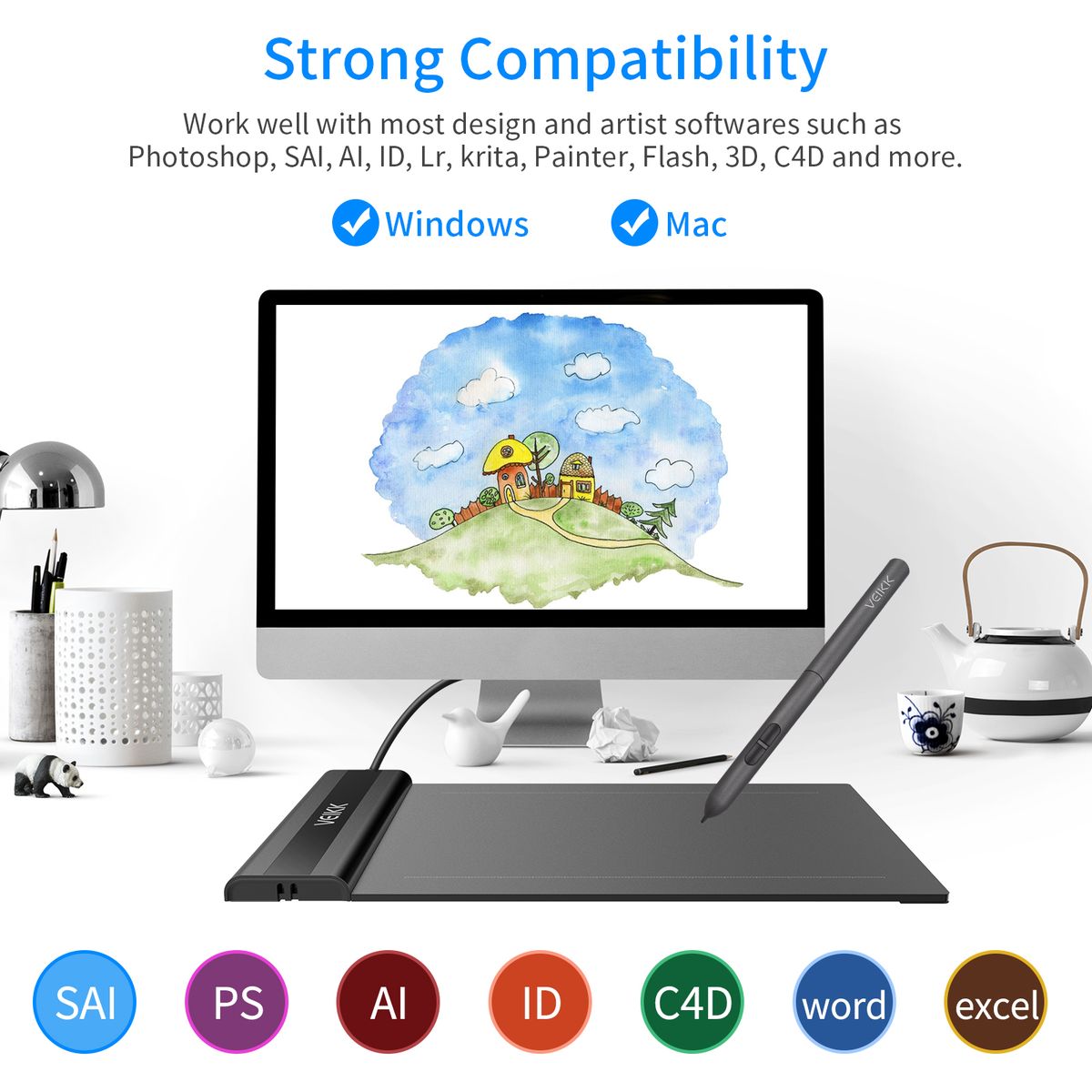 - 【Strong Compatibility】: Support connect with PC/laptop/Android smartphone or tablet. Compatible with Windows 10/8/7(32/64 bits) or later, Mac OS 10.12 or later, Android. Work well with most design and artist software such as Photoshop, SAI, AI, ID, Lr, krita, Painter, Flash, 3D, C4D and more. Suitable for professional artists, novice designers, teachers, and amateurs at all ages.