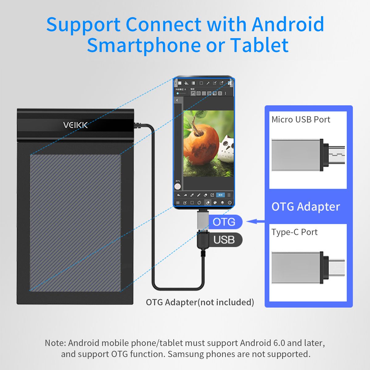 Notes:To connect Android mobile phone/tablet, you need to buy another OTG adapter(not included). Android mobile phone/tablet must support Android 6.0 and later, and support OTG function. Samsung phones are not supported.