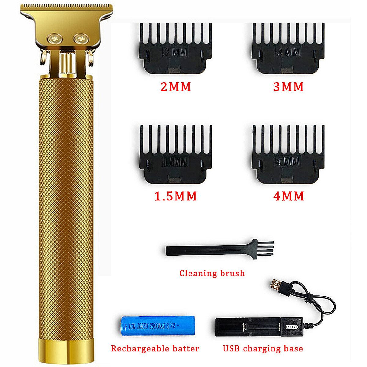 1 x Clipper 4 x limiting Comb 1 x USB Charging Cable 1 x Small Brush