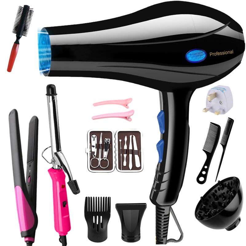 00W Hair Dryer Professional Blow Hairdryer Low Noise Hot And Cold Wind Hair Styling Tools+ 5 GiftsPower: 2200W Frequency: 50HZ Function: Cold Wind/Warm Wind/Hot Wind Color: Black Packing: Hair Dryer X 1, Gifts X 5 Tips: When you use the gift accessories,please use cold wind. Five wind speeds, you can easily adjust the speed and temperature to create personalized styling accurately.Cold and warm shot button sets the style.Equipped with a diffuser and a concentrator: Diffuser helps define natural curls and waves,concentrator allows for focused airflow, making hair smooth and sleek.Material: Plastic Dimensions: (5.51 x 5.55)" / (14 x 14.1)cm (H x Dia.) Achieve shiny, healthier hair* with the Damage Protection Hair Dryer. The Advanced Coating Technology offers 3X more protection* during styling, and our proprietary Micro-Conditioner Technology keeps your hair healthier healthy styles and less frizz*. With three heat and two speed settings, you can find the airflow performance you prefer for your hair type. Then lock in your gorgeous styles with the cool shot button. Plus, the concentrator and diffuser attachments make it easy to style with precision or build volume and lift while you dry your hair.00W Hair Dryer Professional Blow Hairdryer Low Noise Hot And Cold Wind Hair Styling Tools+ 5 GiftsPower: 2200W Frequency: 50HZ Function: Cold Wind/Warm Wind/Hot Wind Color: Black Packing: Hair Dryer X 1, Gifts X 5 Tips: When you use the gift accessories,please use cold wind. Five wind speeds, you can easily adjust the speed and temperature to create personalized styling accurately.Cold and warm shot button sets the style.Equipped with a diffuser and a concentrator: Diffuser helps define natural curls and waves,concentrator allows for focused airflow, making hair smooth and sleek.Material: Plastic Dimensions: (5.51 x 5.55)" / (14 x 14.1)cm (H x Dia.) Achieve shiny, healthier hair* with the Damage Protection Hair Dryer. The Advanced Coating Technology offers 3X more protection* during styling, and our proprietary Micro-Conditioner Technology keeps your hair healthier healthy styles and less frizz*. With three heat and two speed settings, you can find the airflow performance you prefer for your hair type. Then lock in your gorgeous styles with the cool shot button. Plus, the concentrator and diffuser attachments make it easy to style with precision or build volume and lift while you dry your hair.00W Hair Dryer Professional Blow Hairdryer Low Noise Hot And Cold Wind Hair Styling Tools+ 5 GiftsPower: 2200W Frequency: 50HZ Function: Cold Wind/Warm Wind/Hot Wind Color: Black Packing: Hair Dryer X 1, Gifts X 5 Tips: When you use the gift accessories,please use cold wind. Five wind speeds, you can easily adjust the speed and temperature to create personalized styling accurately.Cold and warm shot button sets the style.Equipped with a diffuser and a concentrator: Diffuser helps define natural curls and waves,concentrator allows for focused airflow, making hair smooth and sleek.Material: Plastic Dimensions: (5.51 x 5.55)" / (14 x 14.1)cm (H x Dia.) Achieve shiny, healthier hair* with the Damage Protection Hair Dryer. The Advanced Coating Technology offers 3X more protection* during styling, and our proprietary Micro-Conditioner Technology keeps your hair healthier healthy styles and less frizz*. With three heat and two speed settings, you can find the airflow performance you prefer for your hair type. Then lock in your gorgeous styles with the cool shot button. Plus, the concentrator and diffuser attachments make it easy to style with precision or build volume and lift while you dry your hair.