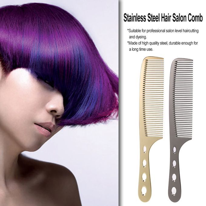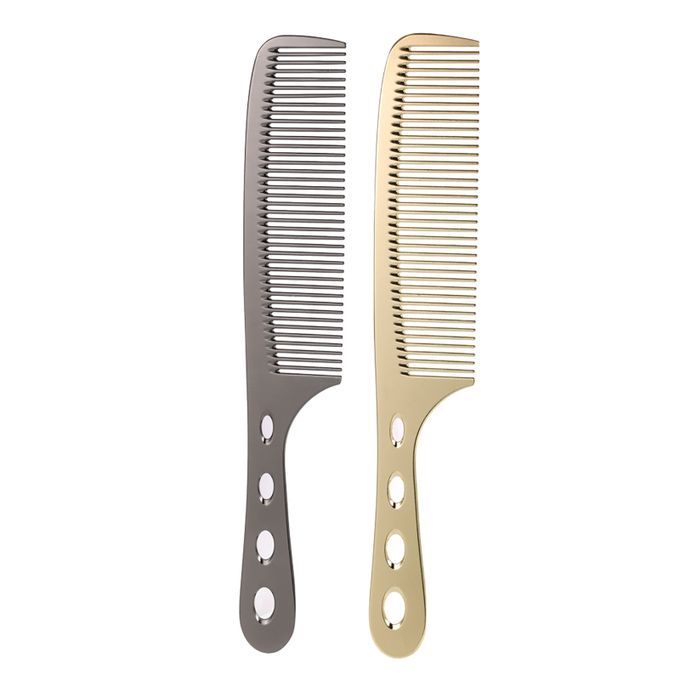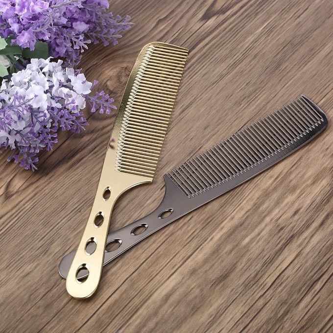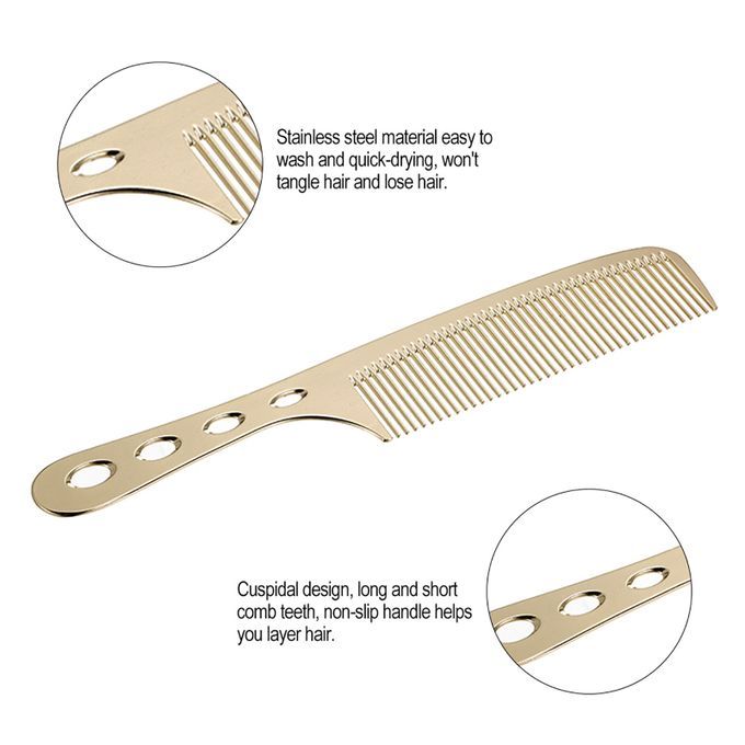 Professional Hair Salon Stainless Steel Hair Comb Hairdressing Steel Comb Hair Cutting Metal Comb Long Handle Golden