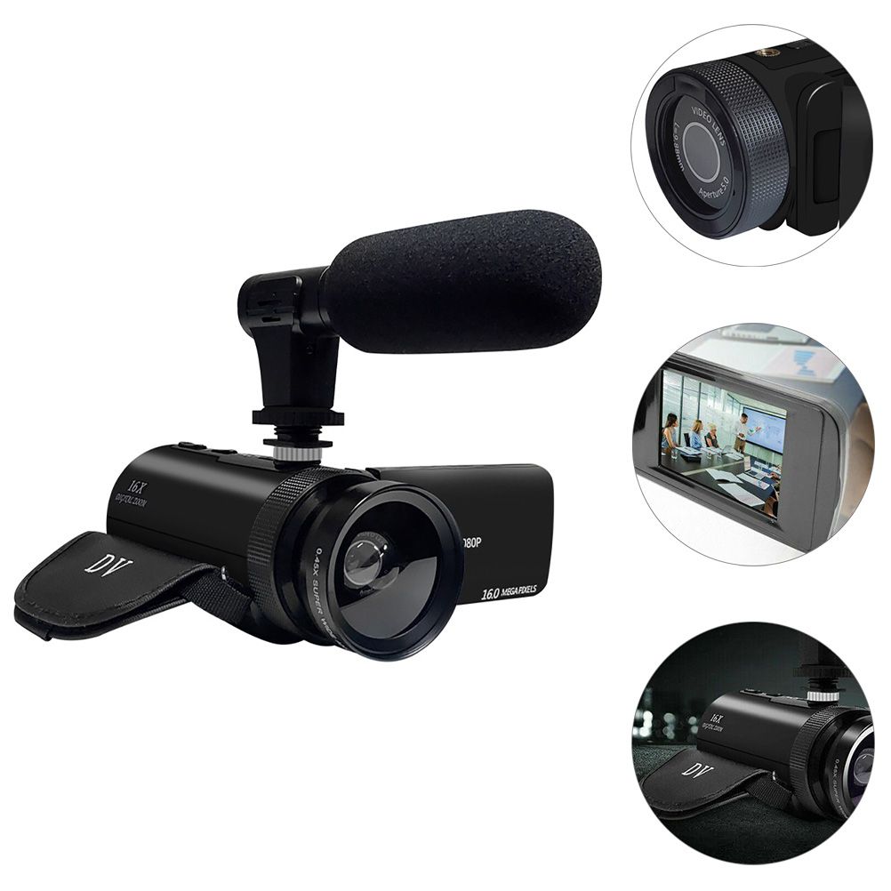 1X Professional HD Camcorder Video Camera Night Vision 3.0 Inch LCD Touch Screen Camera 18x Digital Zoom Camera 1080P Microphone