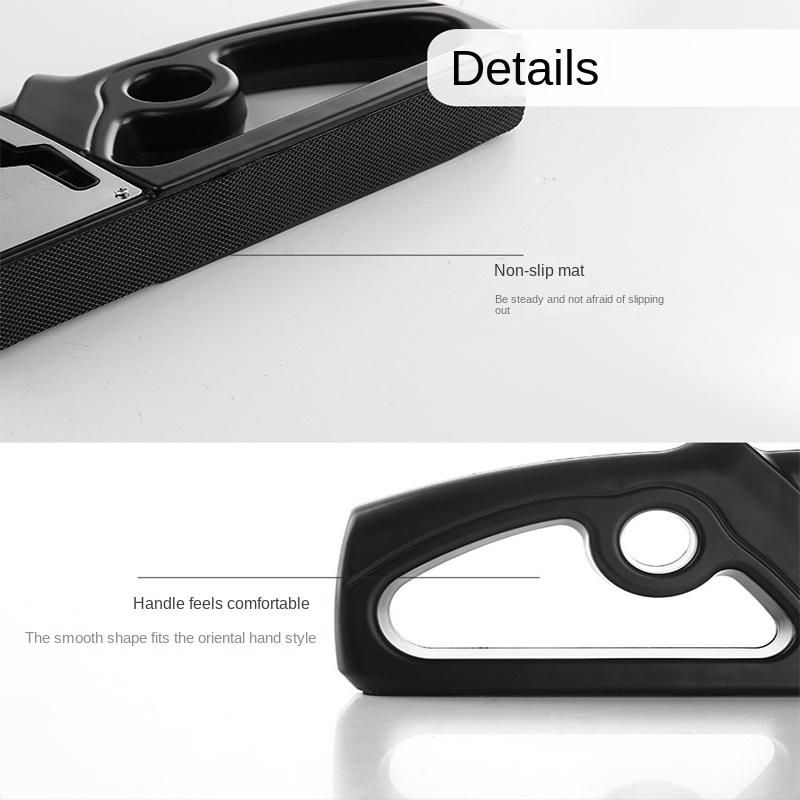 1.Place the sharpener on the platform, hold the non-slip handle with one hand, and hold the kni-fe with the other hand