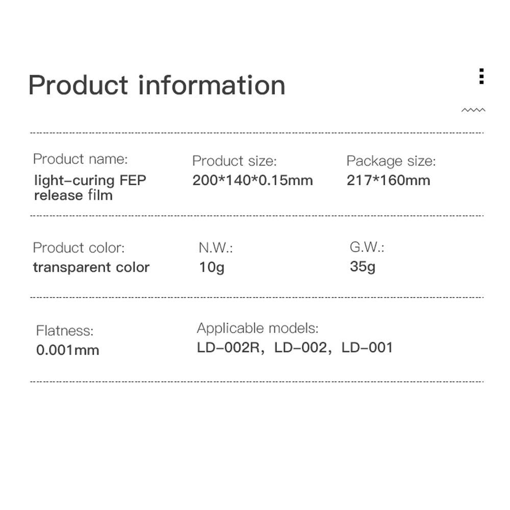 Buy Professional Light-Curing FEP Release Film Sheet 200*140mm High Transmittance Heat Resistant Compatible with LD-001/LD-002/LD-002R Photon SLA DLP Resin 3D Printer in Nigeria