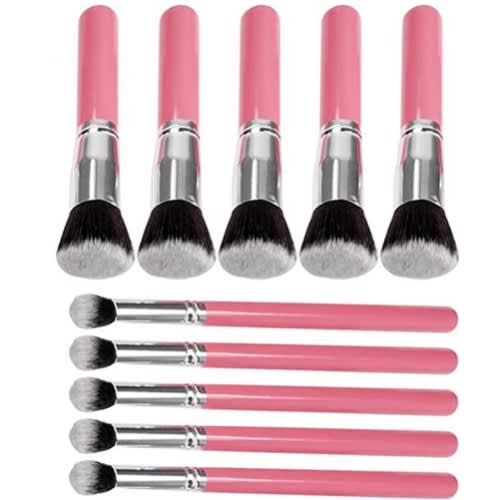 Buy Professional Makeup Soft Face Contour Brush-Pink & Silver - 10pcs in Nigeria