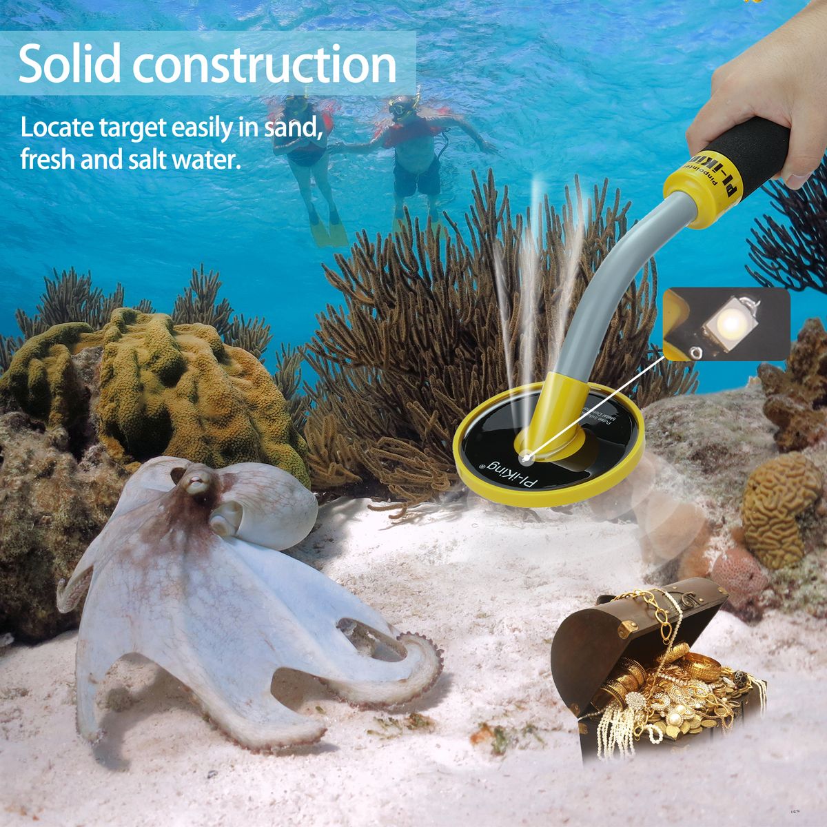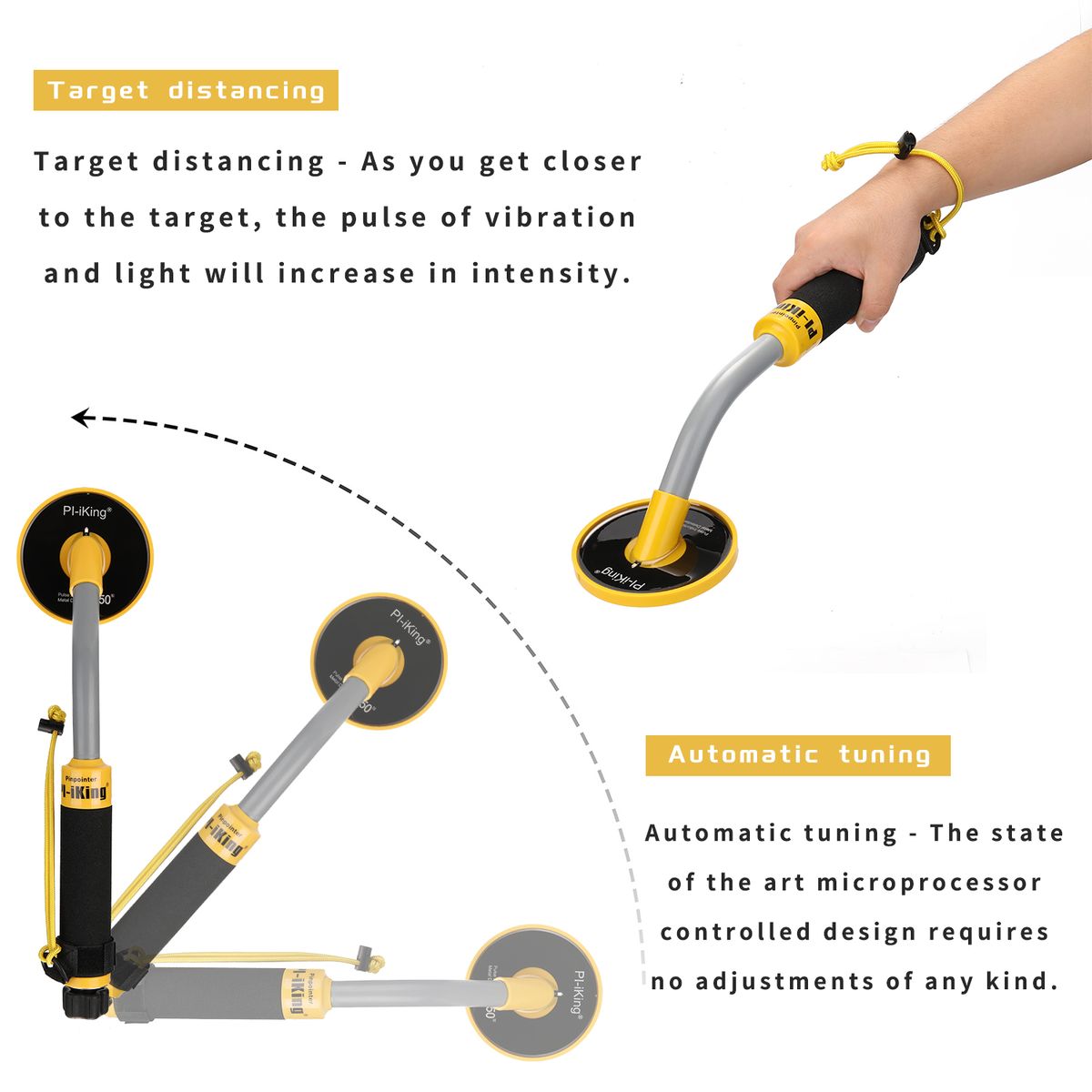 Made of fine quality material, practical, easy to operate and use, wide application range, has a long service life. Features: Communicates with vibration & light - LED light signal indicator and vibration indicate the detection of metal. Pulse induction technology (PI) - Allows hunting in salt water or in any type of soil, including black sand. Detection depth stability - Advanced circuitry maintains detection distance throughout the life of the battery. Target distancing - As you get closer to the target, the pulse of vibration and light will increase in intensity. Automatic tuning - The state of the art microproceor controlled design requires no adjustments of any kind. Waterproof - Fully waterproof for 30 meters underwater. Best for seeking treasure undersea. Belt loop & wrist s - Includes a belt loop to attach to any common belt clip as well as a wrist s for added safety. Pulse induction search coil - Wider detecting distance, high sensitivity, even seek one tiny . Solid construction - Locate target easily in sand, fresh and salt water. Seeking treasure undersea - LED indication, vibration indication. Search coil - Design pinpointer, better detecting area & depth. Specifications: Material: ABS Color: yellow+black+grey Brand name: Pi-Iking Detection mode: pulse induction (PI) Detect objects: all metal (, aluminum loop, small aluminum product, coins, gold, bronze, silver) Alarm mode: vibration & LED light Water resistant level: 30M/98ft waterproof Tuning: automatic Sensitivity: 25 cents coin: 10mm; one coin: 15mm Frequency: 6.8KHz Current: standby: 8mA, Max.: 20mA Operating current: 0.03A Operating voltage: 9V Operating temperature: -5℃ to +55℃ Battery: 1 * 6F22 9V battery (not included) Application: testing metal foreign body of ra-w materials, and food, detection of underground line & line, archaeology, exploration, found buried treasures of gold, silver and metal artifacts, the acquisition of s metal industry, checking metal foreign bodies in delivery and luage. Item size: 420 * 112 * 105mm / 16.5 * 4.4 * 4.1in Item weight: 391g / 13.8ounce Package size: 460 * 95 * 95mm / 18.1 * 3.7 * 3.7in Package weight: 555g / 1.2lb Packing List: 1 * Metal Detector 1 * User Manual