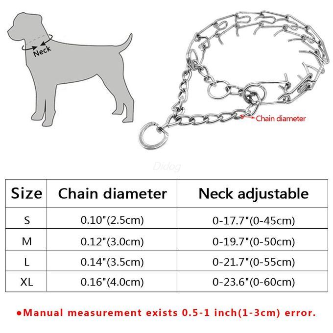 metal chain choke dog collars.100% quality guarantee. It is a bane to many nauty dogs, it can change your dog's bad habits . Material:metal Feature: chock dog collars, training dog collars. Size: Note :The chain is professional pet training products ,there is maybe a little danger to your pet , please use it carefully. Tips :Please put the stimulation points outword when you put the collar on the dog , so as not to heart the dog's eyes . After wearing , you can in turn the stimulation points . Shipping and Packaging