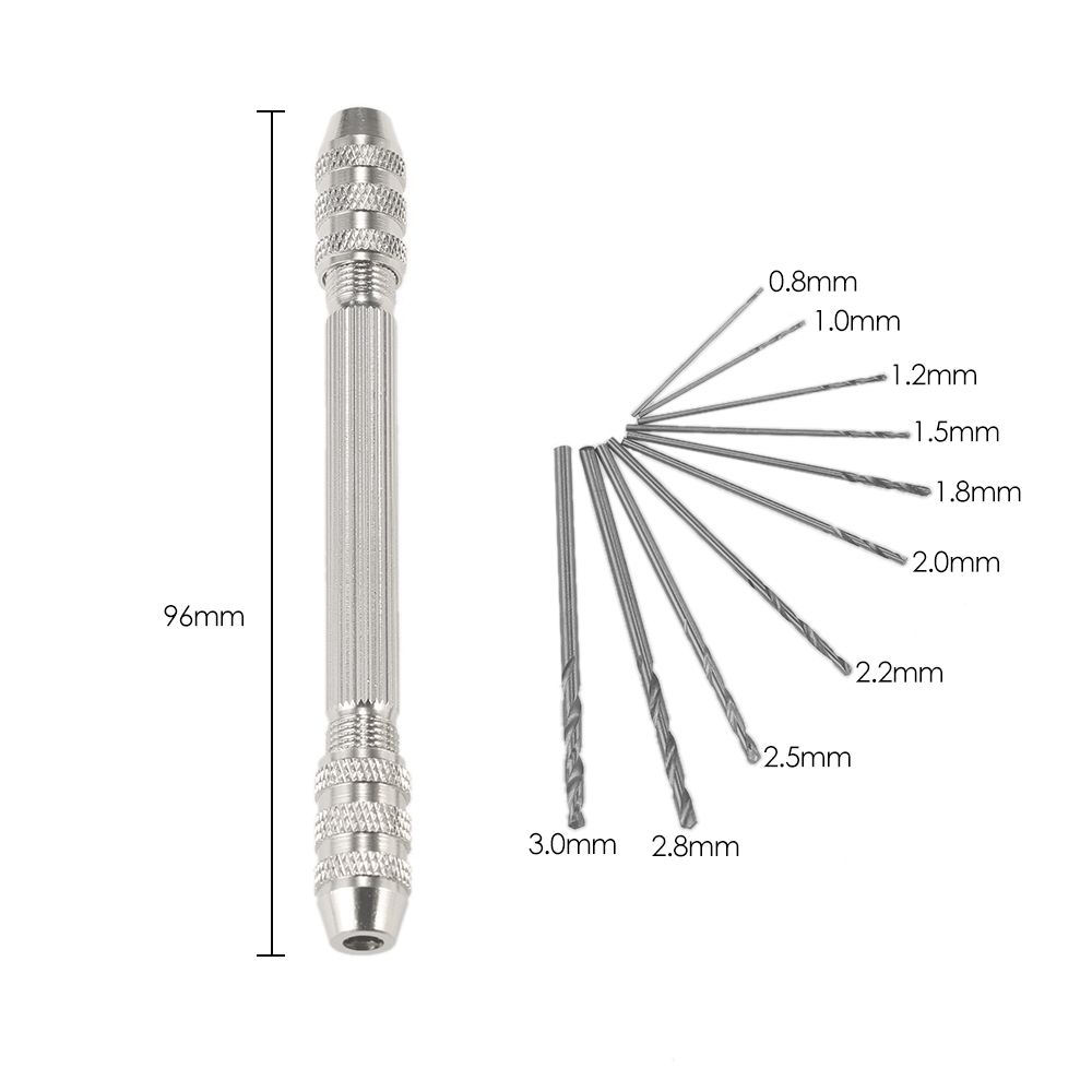 It includes 10 sizes of drill bit(0.8mm, 1.0mm, 1.2mm, 1.5mm, 1.8mm, 2.0mm, 2.2mm, 2.5mm, 2.8mm, 3.0mm), which meet your different needs perfectly.