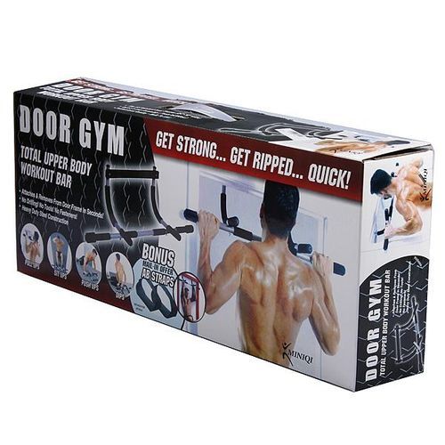 Get Strong, Get Ripped ....Quick with this Professional Door Gym bar. TOTAL UPPER BODY WORKOUT BAR:Transform your doorway into a gym-iron. This gym bar is a multifunctional exercise bar you can use to do pull-ups, chin-ups, push-ups, dips, arm and shoulder exercises. With this portable product, you can perform every exercise you need to build a powerful upper body!. The iron gym uses your body's own resistance to deliver powerful result fast. It strengthens and tones your biceps, triceps, chest, back, shoulder and abs. It instantly attaches to or removes from your door frame with no drilling or tools required, and the heavy duty steel construction supports up to 300 Ibs . Now it's easy to get the strong lean body you always wanted, right at home* Attaches and removes from Door Frame in Seconds* No Drilling! No Tools! No Fasteners!* Heavy Duty Steel Construction* Can be used for Pull Ups, Sit Ups, Push Ups, Chin Ups and Dips * Non-Slip Rubberized Feet* High Density Foam * Protective Foam (To protect walls from marring m Grips)* Fits All Standard Door Frames (24" -32" wide)* Quick and easy Assembly (Tools included)* Professional Quality -Built to Last