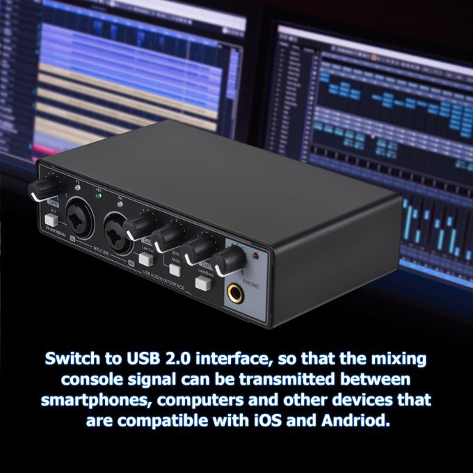 Switch to USB 2.0 interface, so that the mixing console signal can be transmitted between smartphones, computers and other devices that are compatible with iOS and Andriod.