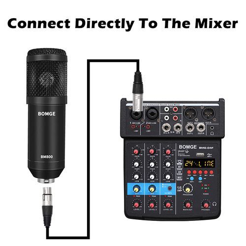 Features: For Computer Professional Condenser Audio 3.5mm Wired BM 800 Studio Microphone Vocal Recording Mic KTV Karaoke+Microphone stand Ideal for radio broadcasting studio, voice-over sound studio, stages, TV stations, etc. Scissor arm Desktop Microphone Stand & Mic Boom Filter & shock-proof mount Stable, Durable & Affordable Desktop type Microphone Stand; Double-braced arms add strength to stand much more weight; Foldable arms - minimize transport size and easy to storage ; Scissor arms - completely flexible adjust the desired angle and height Adjustable clamp to mount on the desktop easily, fixes securely to any mic stand for easy to install and convenient to use. Dual suspension springs on each boom arm for extra stability. Double audio port - Connect the microphone input and earphone/speaker output at the same time. Specifications: Output Impedance: 150Ohm+ / -30% Microphone Output Interface: 3.5mm Signal Noise: 78dB XLR Cable Length: 2.5m Frequency Response: 20Hz-16kHz Load