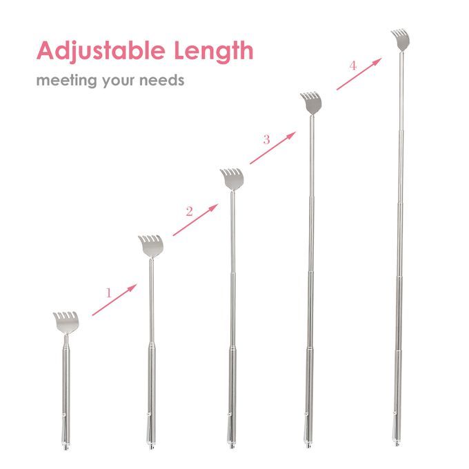With a three-section telescopic handle, it can extend from 6.7" to 20.1", flexible enough to easily reach anywhere you need to scratch.