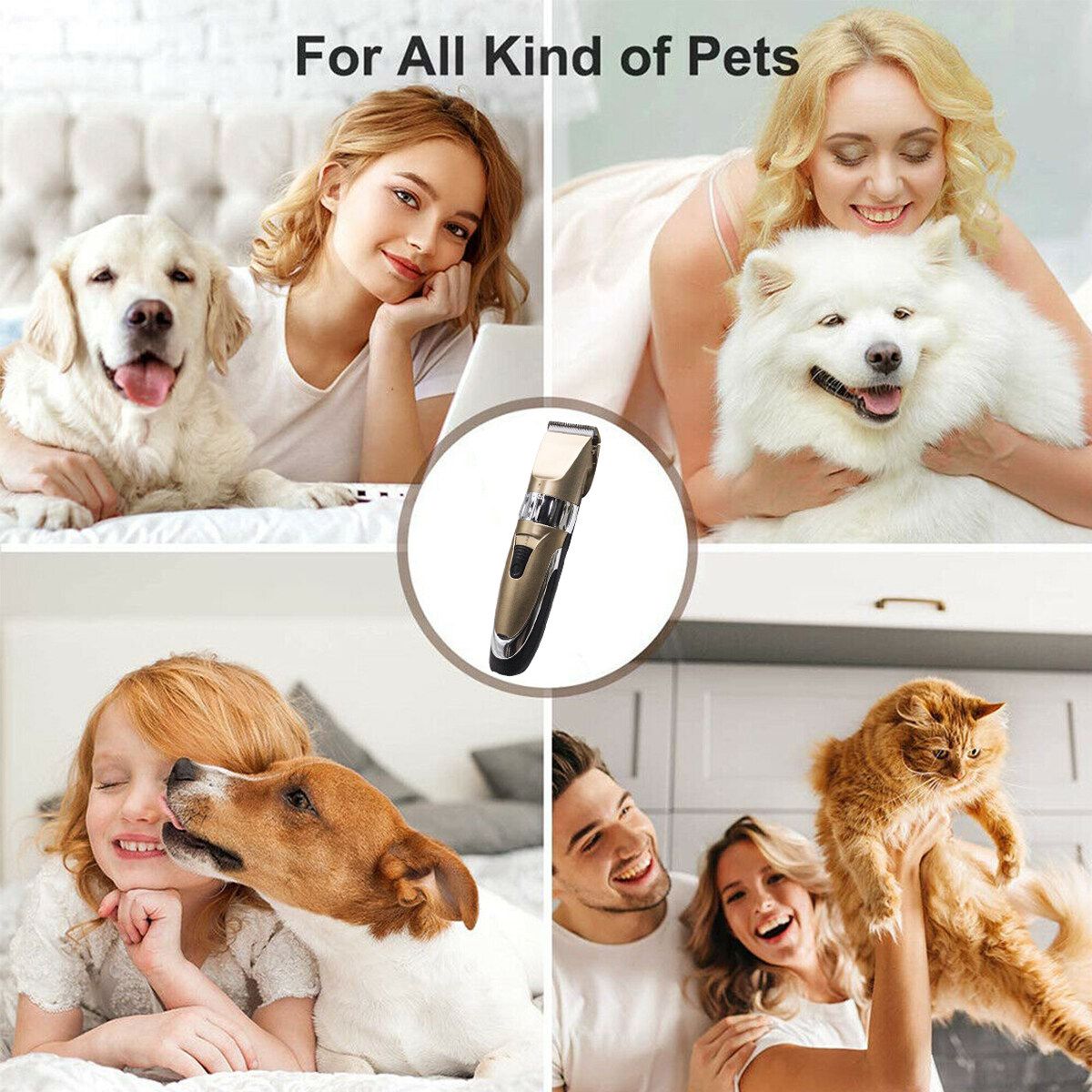 Feature:·Safe and Efficient Trim5 adjustable functions for the comb from 0.8mm to 2mm. With 4 attachment guide combs: thinning-out, (3mm/6mm/9mm/12mm), skin-friendly. Appearance-following combs make it safe, easy, comfortable.·Ultra-QuietThis pet hair clipper with precisions motor, low vibration ensures whisper-quiet operation and a stress-free grooming experience.·Cordless and RechargeableLight Weight Cordless Design allow you to chases the dog all over the house without the wire bothering you.·Ergonomic DesignSleek design makes it easy to hold and control. Come with a universal charger and a cleaning brush for your convenience.· HeadThe ceramic process has superior wear-resistance than the General iron movable kn.fe, which can greatly improve the life of the head.· TechnologyUsing the "arc tip top arc treatment" technology, R-type obtuse angle, contact the skin at various angles during start-up operation, can protect the skin from injury, including infants.