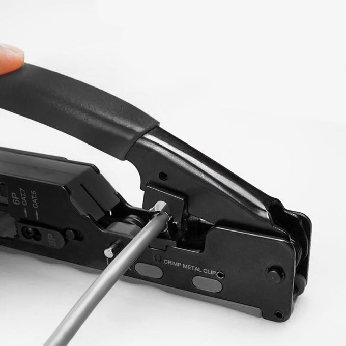 The back side is designed with crimping interface blades, specially designed for through-hole crystal top, crimping and off excess network cables at the same time.