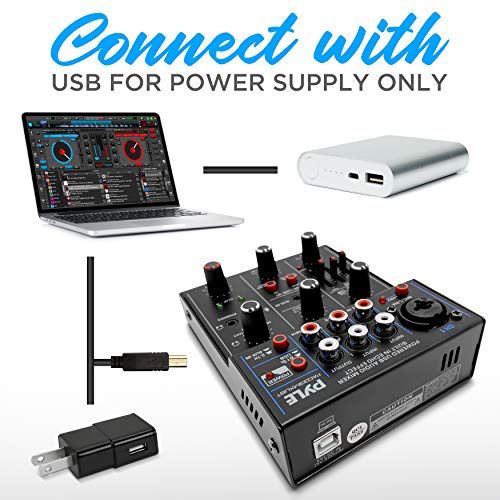 - 5 INPUTS: Pyle DJ mixer USB audio interfae mixer is equipped w/ ombo jak XLR+6.35mm for mi/line/guitar inputs, 2-TK, Stereo RCA in, AUX, and 3.5mm mirophone input to CH1. Produe reative remix whih is perfet for DJ party/musi reording