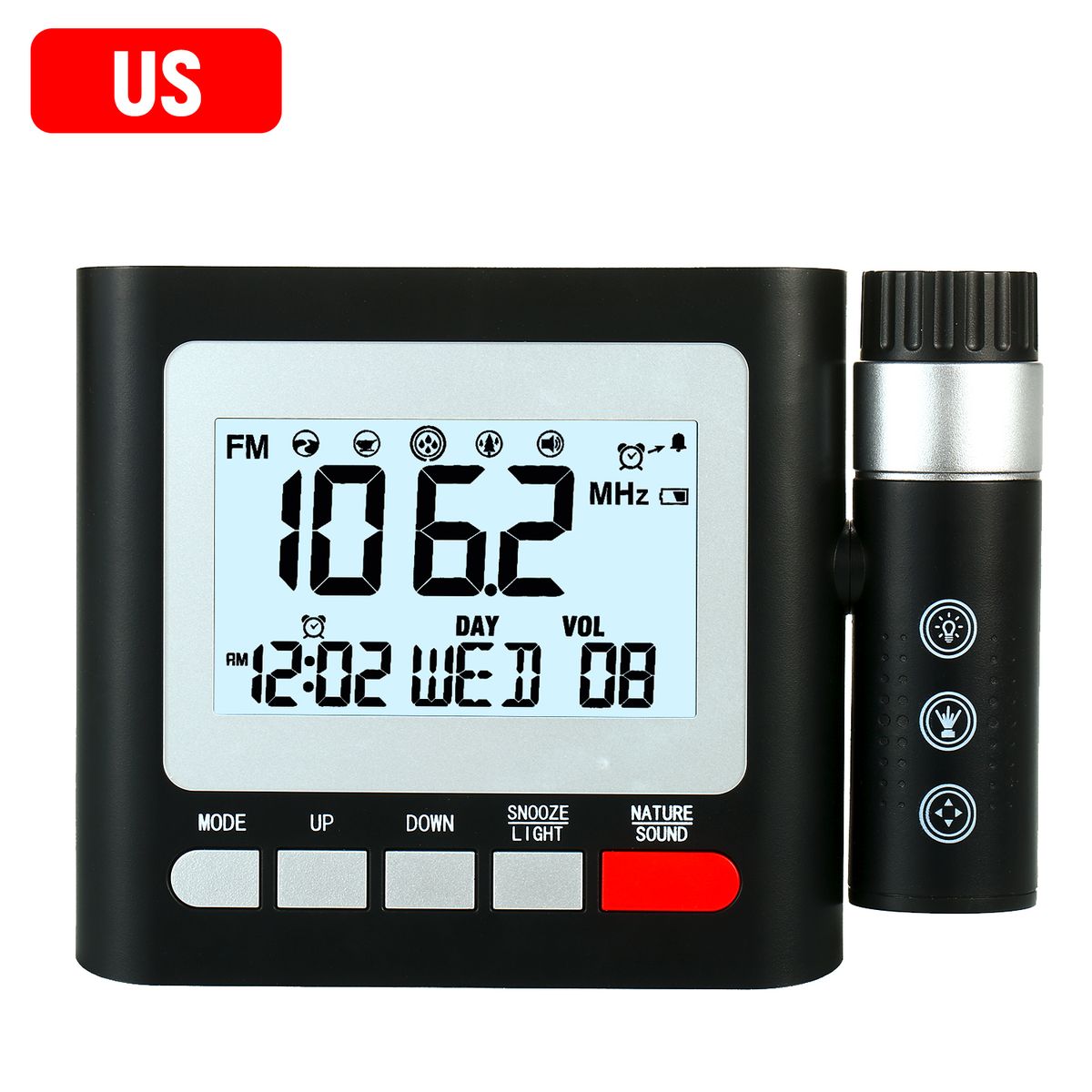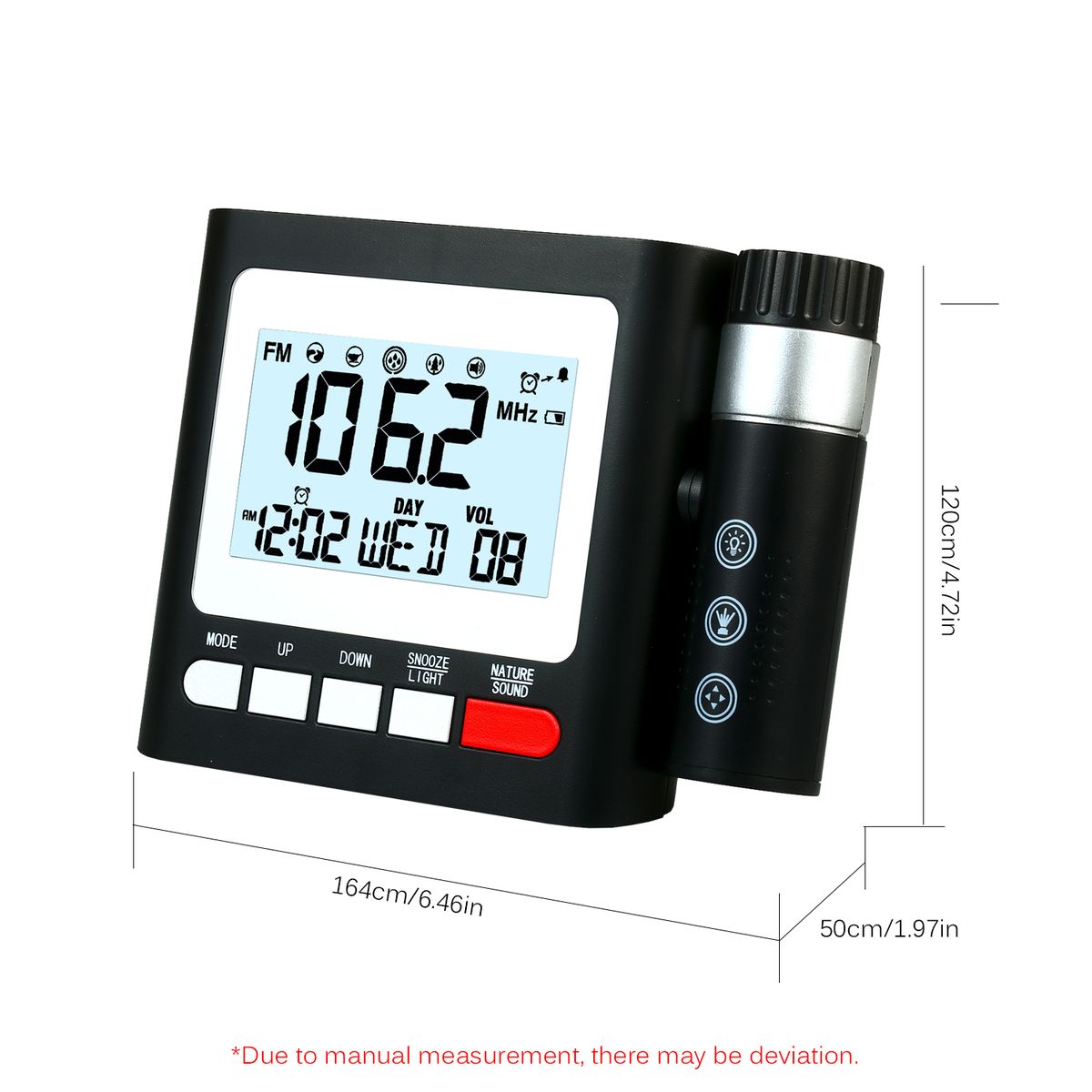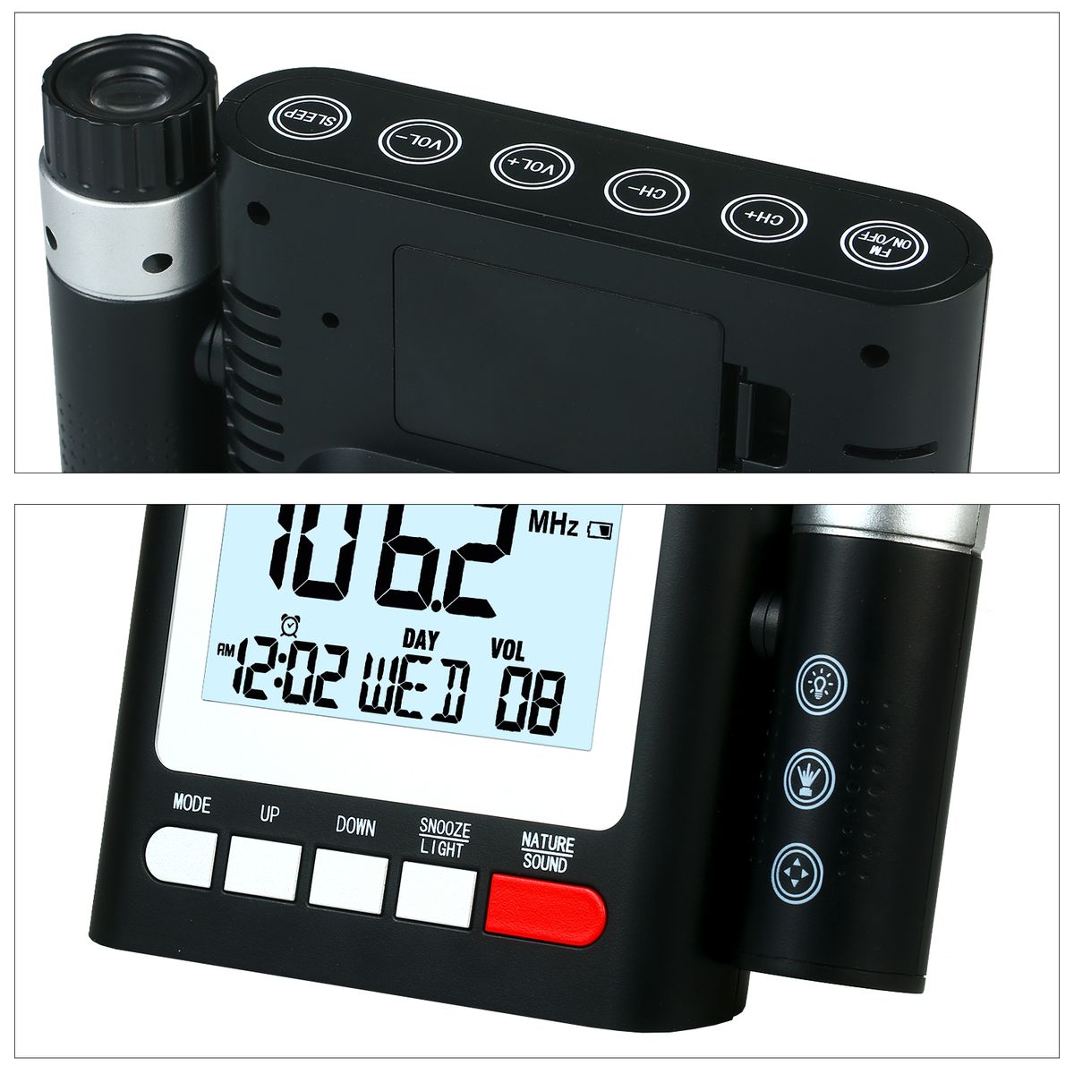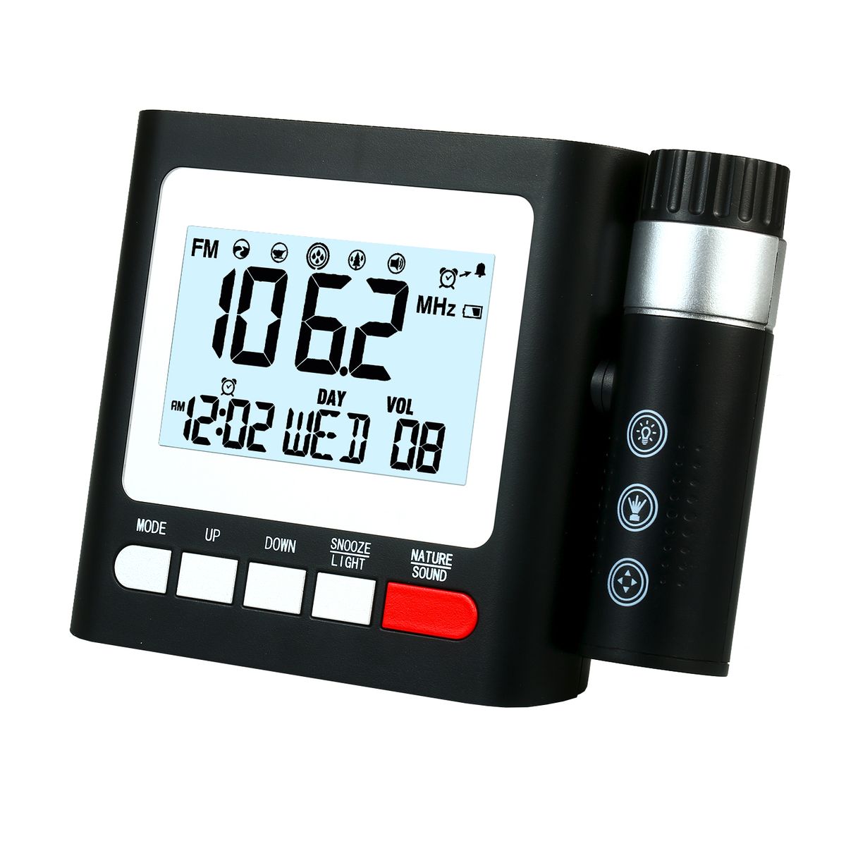 Projection Clock: digital alarm with projection function that project time onto the ceiling or wall, projector rotatable enable you to adjust to the preferred angle.