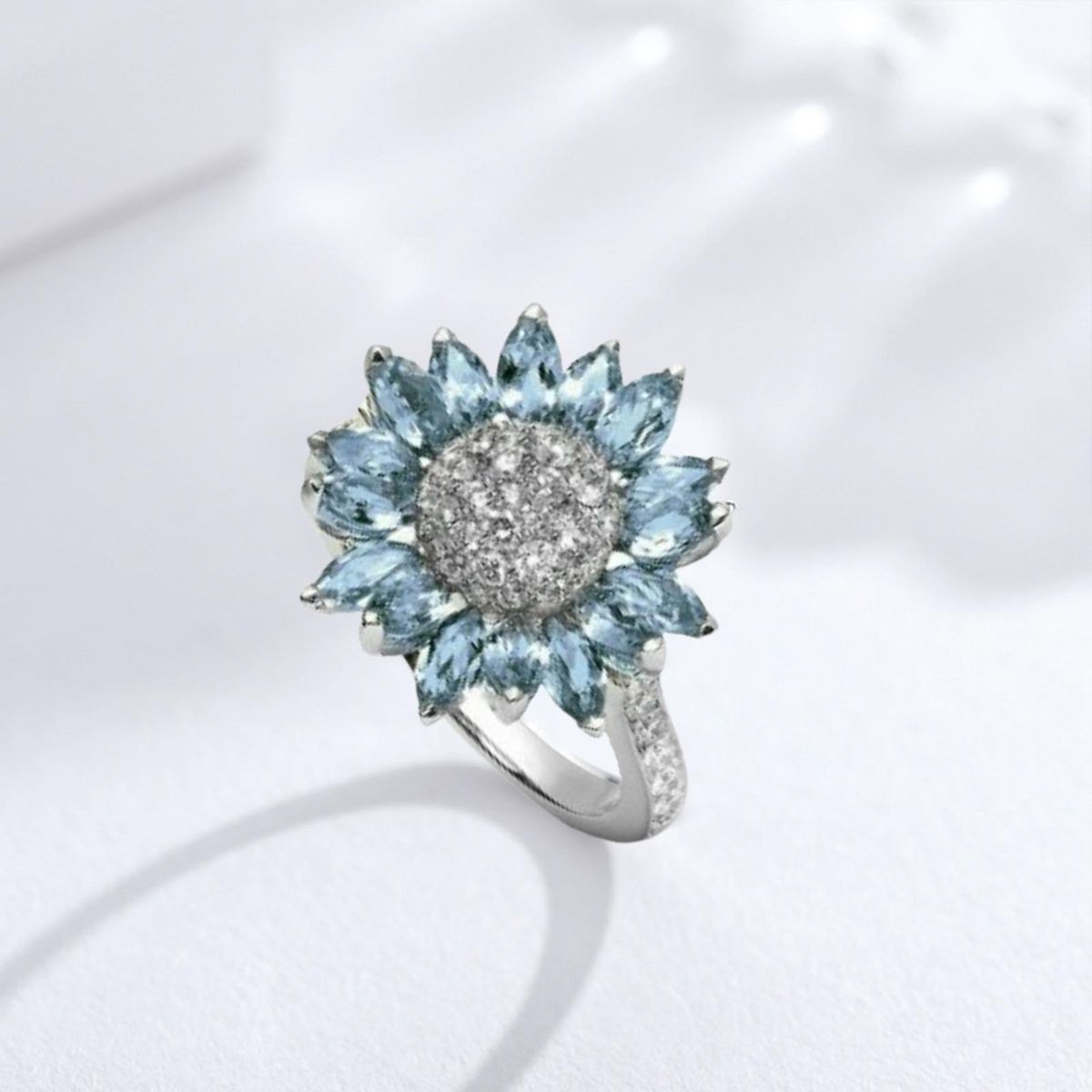 Adopting sunflower shape and shiny cubic zirconia decoration, this finger ring looks very delicate and eye-catching. And it is a wonderful gift for your girlfriend.